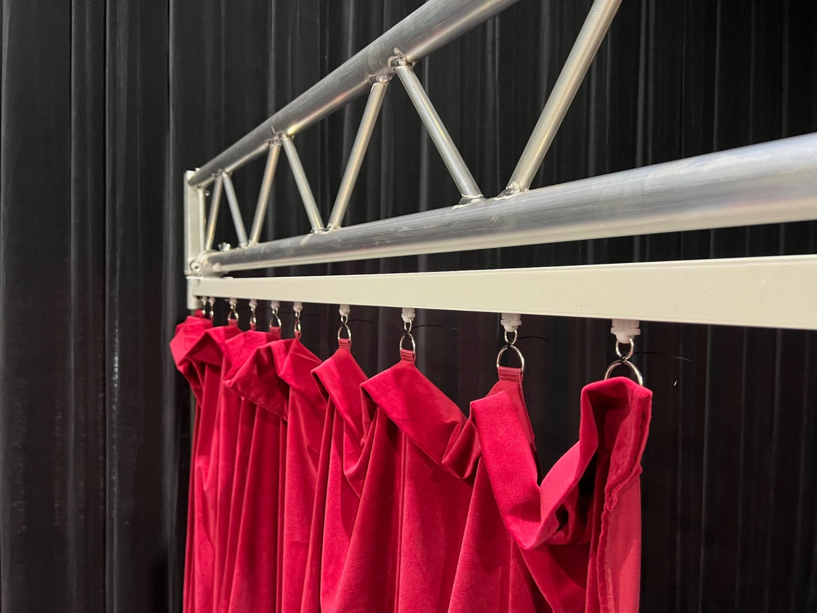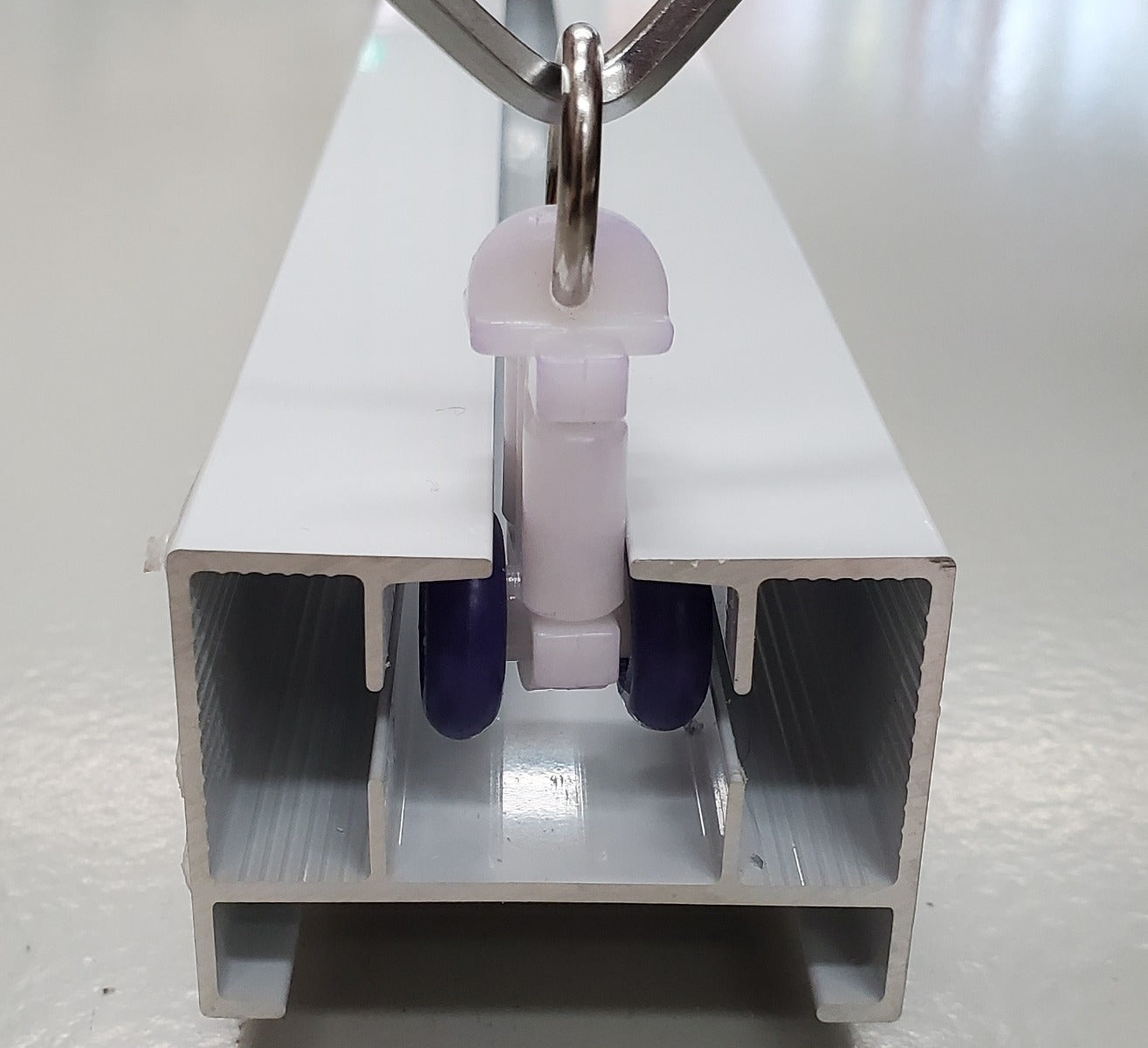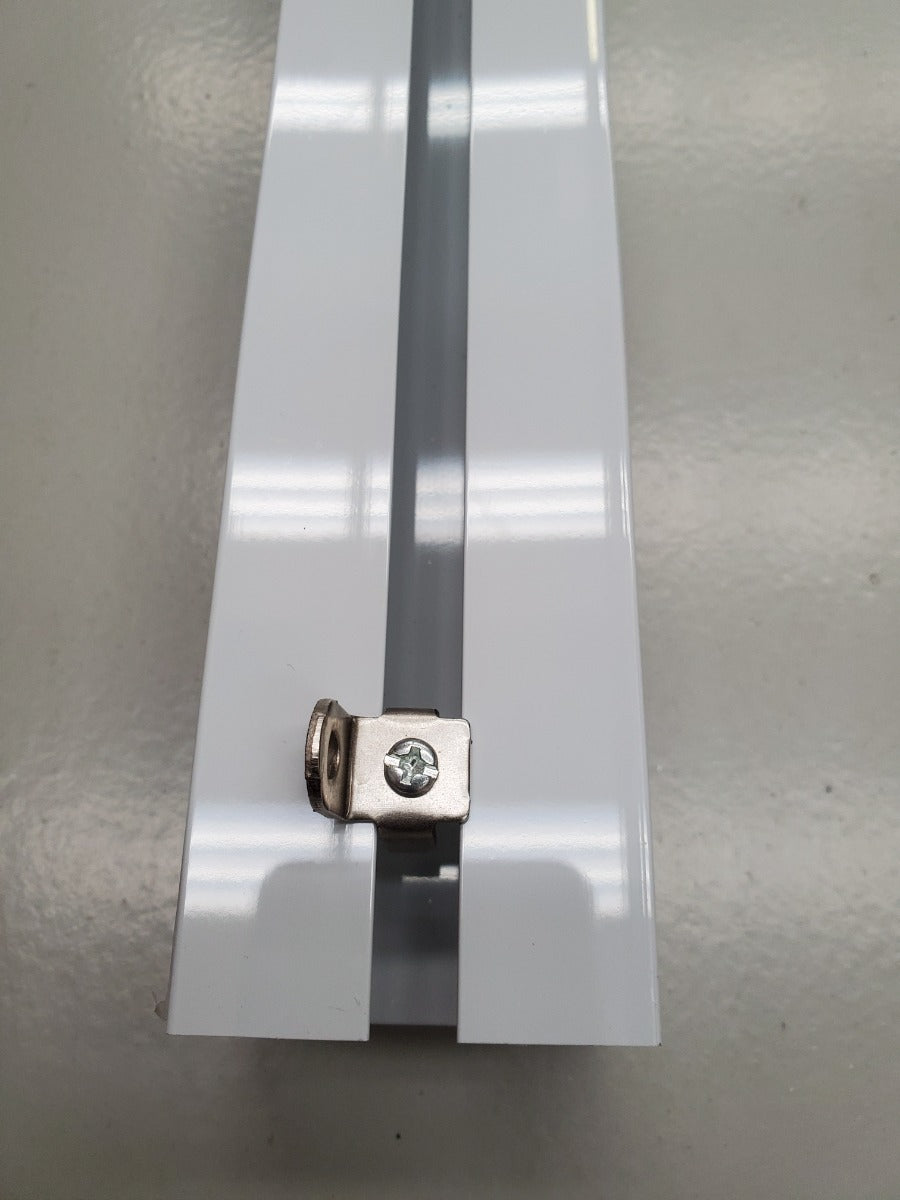 | The stage curtain track is a heavy duty system used to suspend acoustic curtains in indoor or outdoor applications. The track is 2.4m long and can be extended or cut to size as required. Each length is supplied with a joining plate allowing for endless runs of track. The slots in the top of the extrusion are designed to accept ceiling bracket enabling the track to be fixed directly beneath a ceiling. The bracket can be also fitted with the 50mm aluminium clamp (2 supplied) to allow the track to be attached to aluminium truss. Each length of track is supplied with 20 robust runners, which feature large nylon roller wheels that ensures smooth, silent operation. Track dimensions: 55mm wide, 40mm high x 2400mm long Colour: White Material: Aluminium Track wall thickness 2mm Track dimensions: 55mm wide, 40mm high x 2400mm long Track Wheel Diameter: 19mm