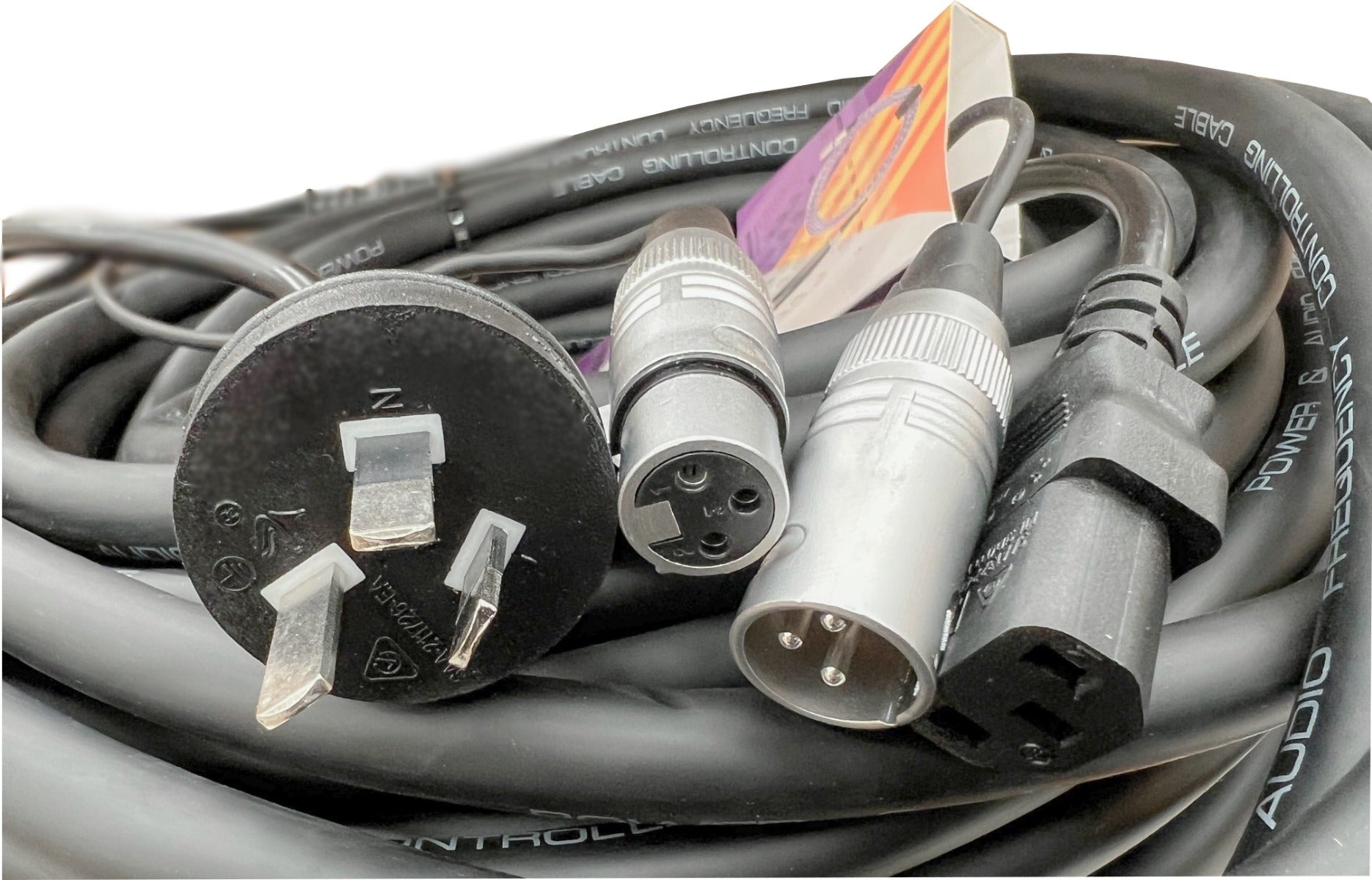 Power Lead (10A) and Signal Cable Combo (20m): XLR 3pin connection.