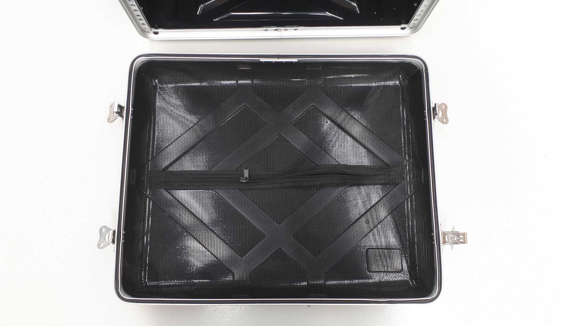- Pocket with a zip inside one of the lids for storing cables or mics