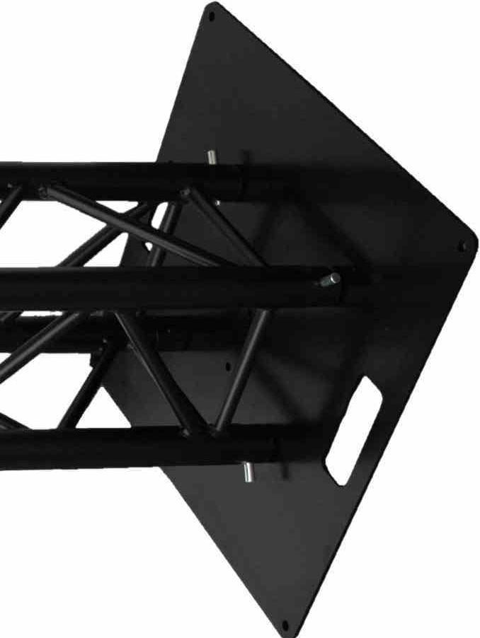 Black Steel plate. Suits Alutruss 290mm tri-truss and box truss. Suitable as a base plate for upright truss stands and various other ground support truss structures.