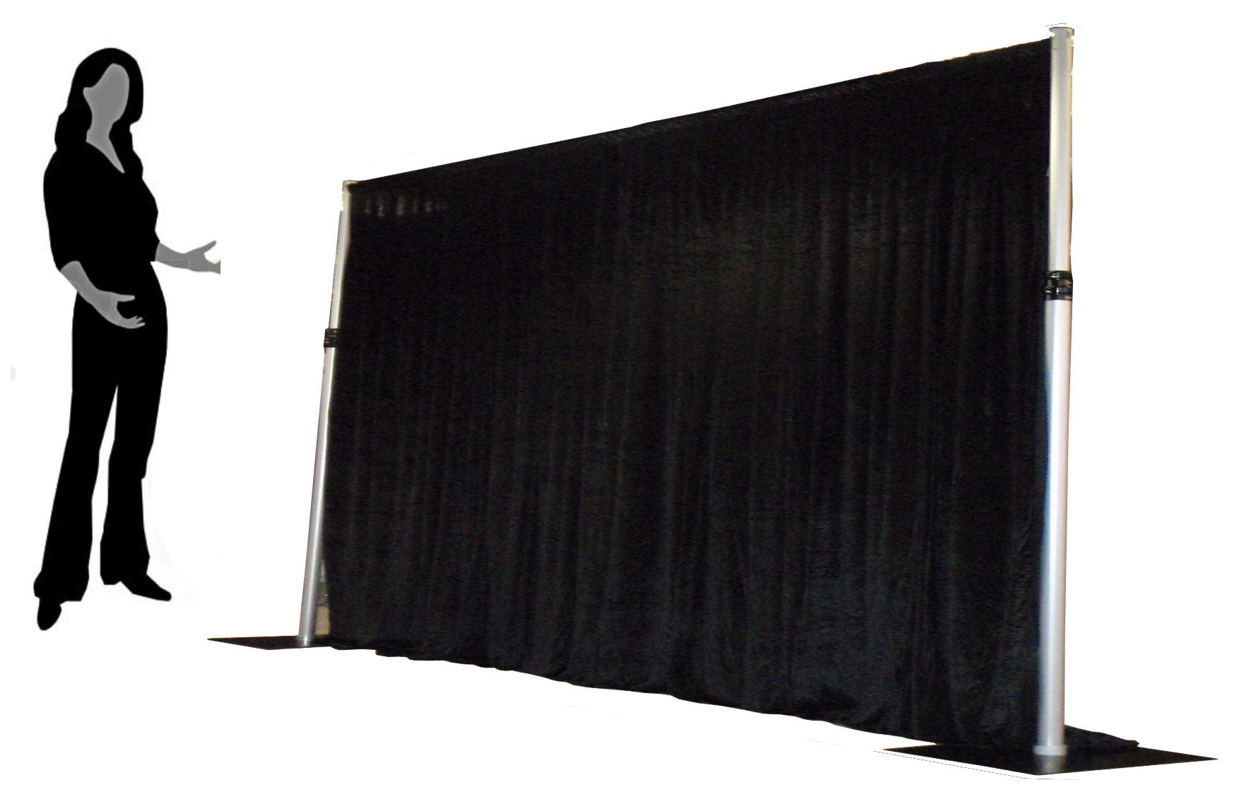Black light weight velveteen drape 1.2m drop x 3m width. Looped to fit the Aluminium Pipe & Drape Support System.Colour- Black 200g/m2. Black lightweight velveteen drape can be used as  theatre curtain or a stage curtain.