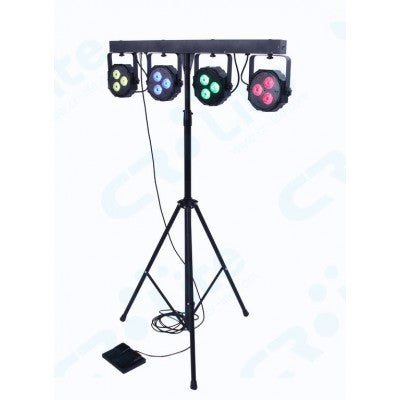 This powerful par profile system is the most compact version on the market. The CR Lite LED Power Party Stage Wash Package includes four powerful LED lights, T-bar, Stand, Foot controller plus two carry bags. It is the perfect all-in-one solution to deliver a great lighting performance for any mobile entertainer.