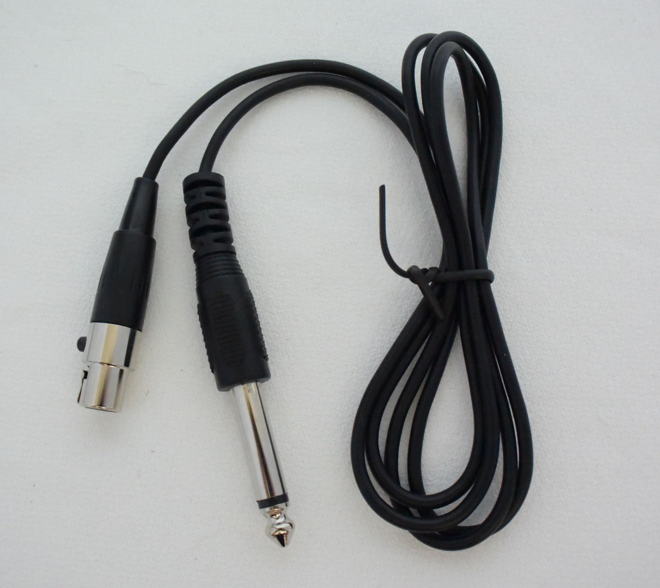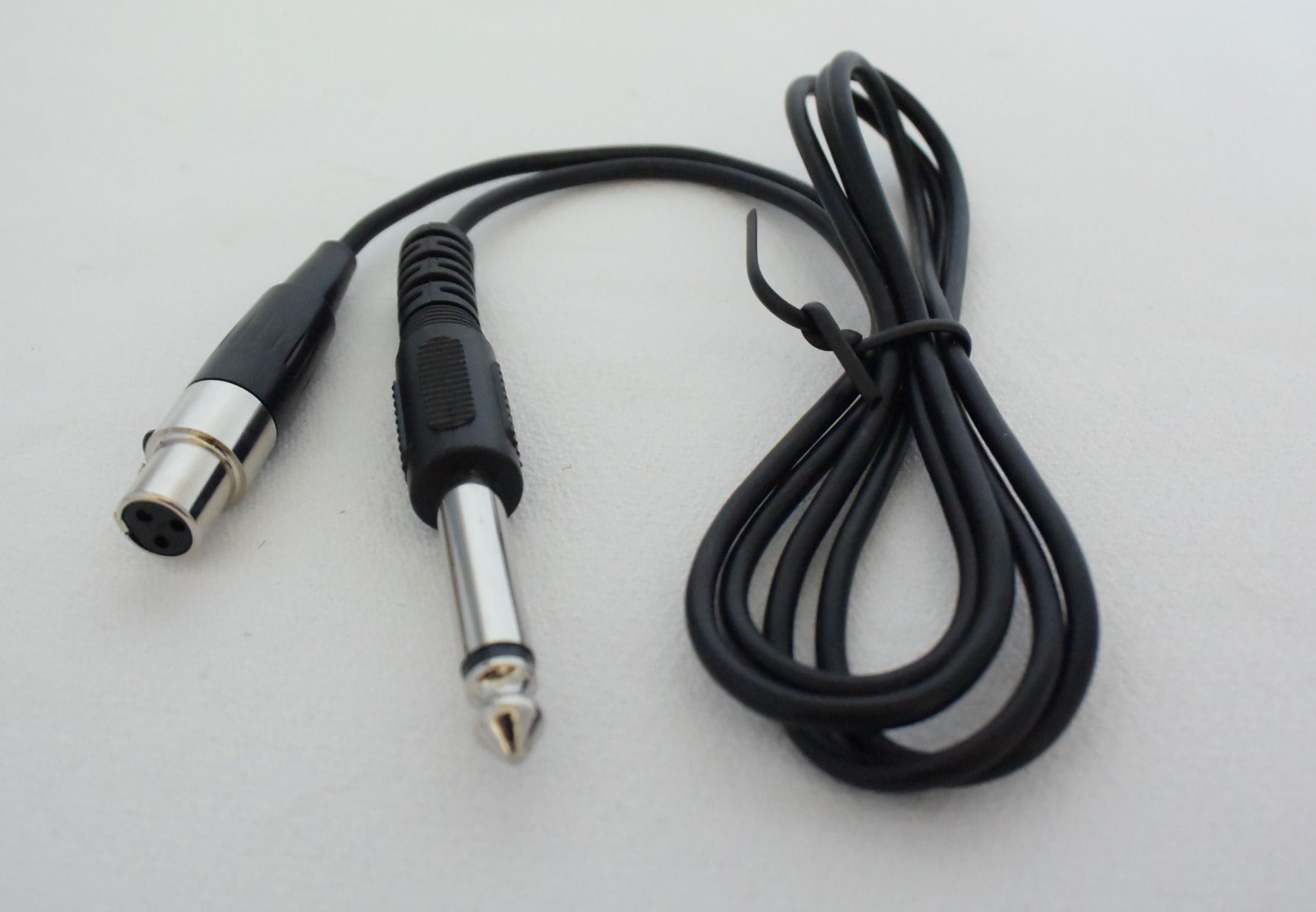 Guitar / instrument cable to suit AKG, Pasgao wireless beltpack transmitters- 110cm long cable- connects insturment to body-pack transmitters- 3pin Mini Connector (TA3F) to 1/4" jack connector