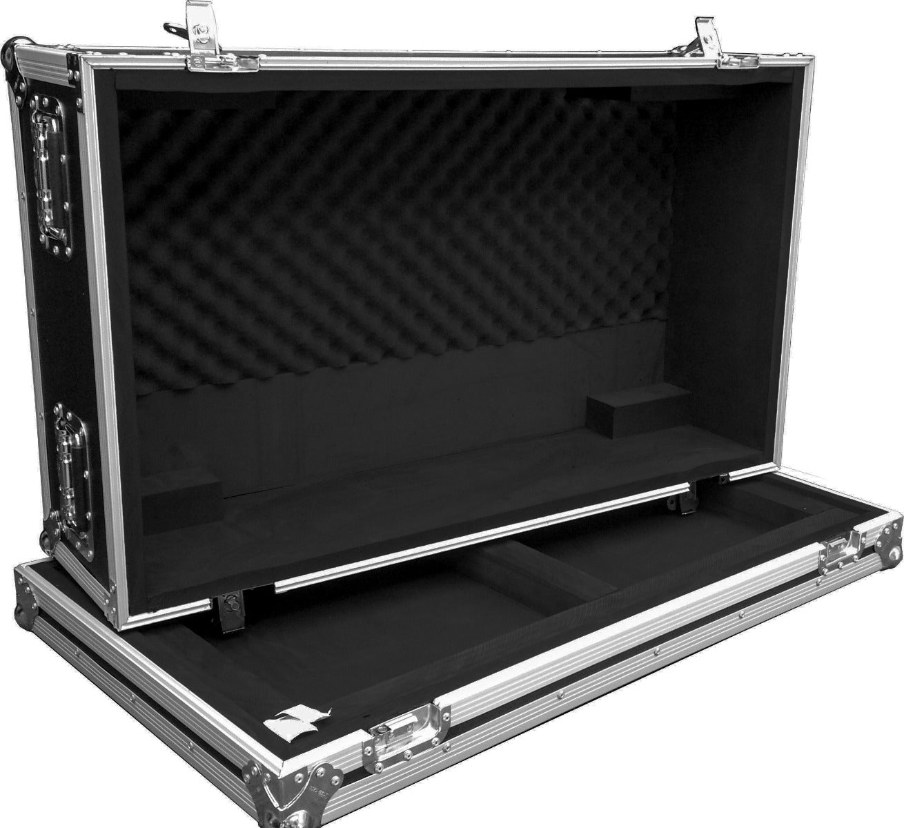 Features 9mm laminated plywood construction, hardfoam lining, 4 latches, 4 recessed handles, and 4 rubber feet